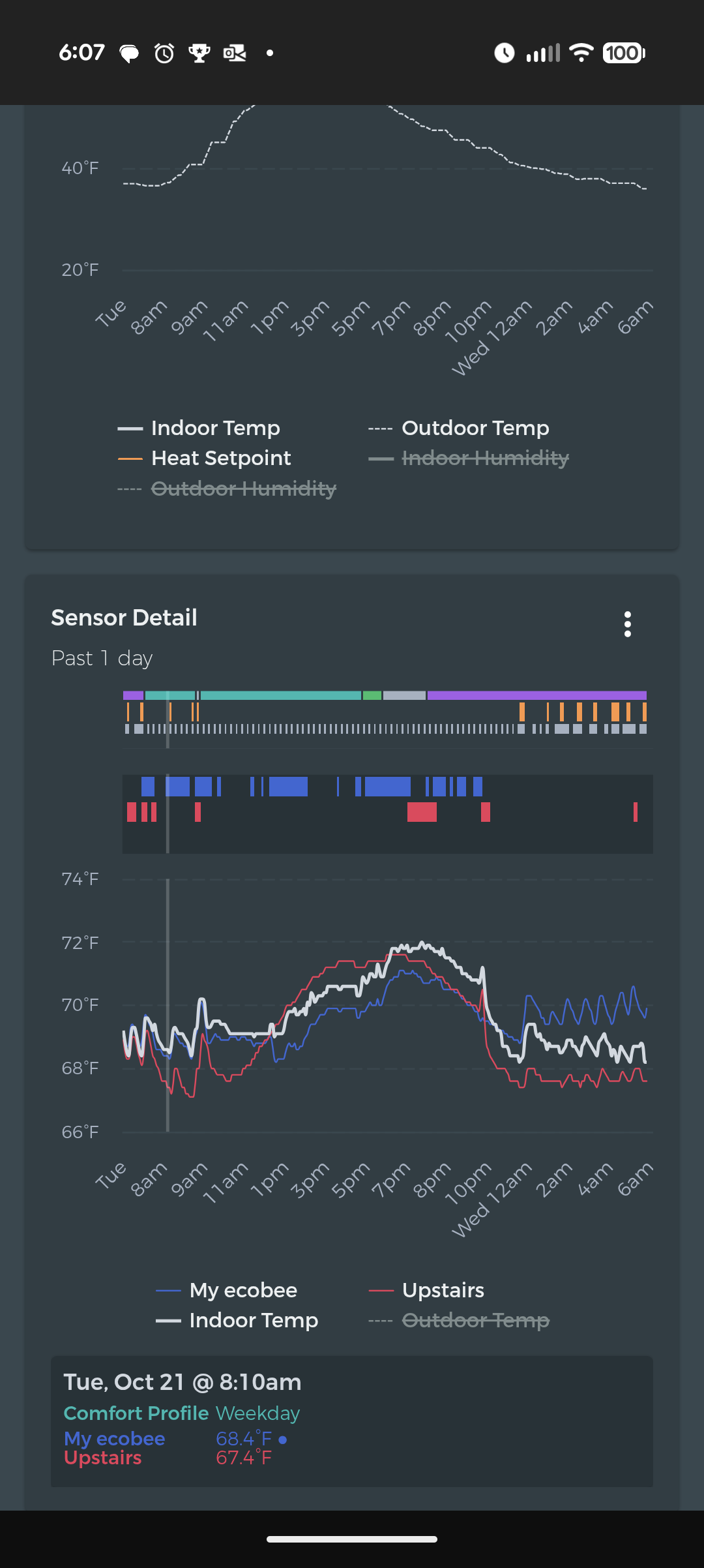 I just noticed that at around 5pm (East Coast US) on 3/10, my indoor temperature plot is no longer matching any of my sensors. I actually can’t seem to figure out what it is aligned to as it is greater than all sensors on my thermostat.