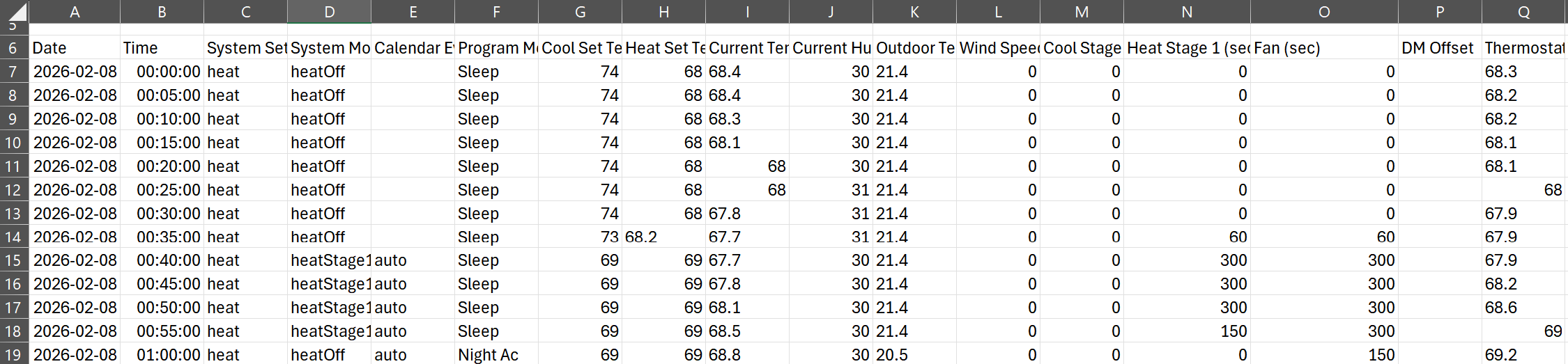 Compute total hvac activity (broken down by heat, cool, primary, secondary, etc) in hours based on data shown in current view. In other words, area (time) of the different colored bars in the graph.