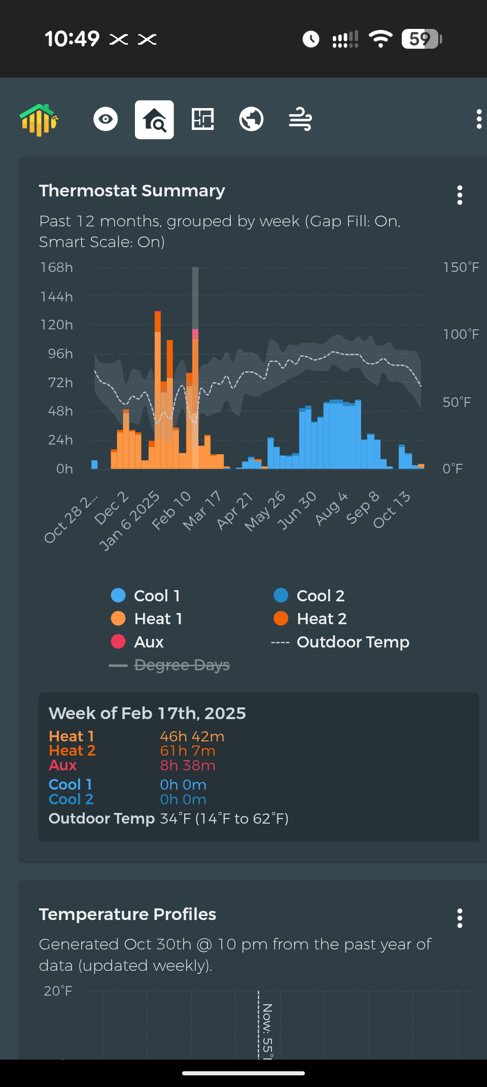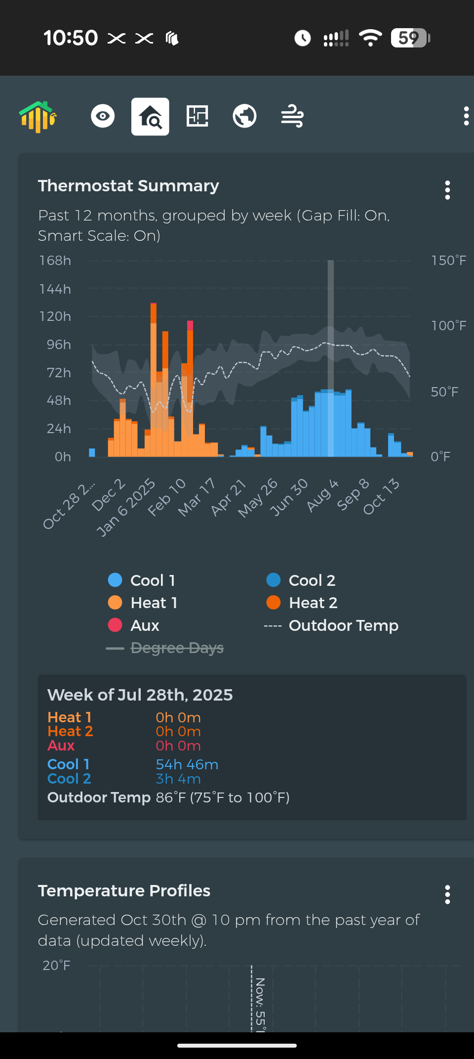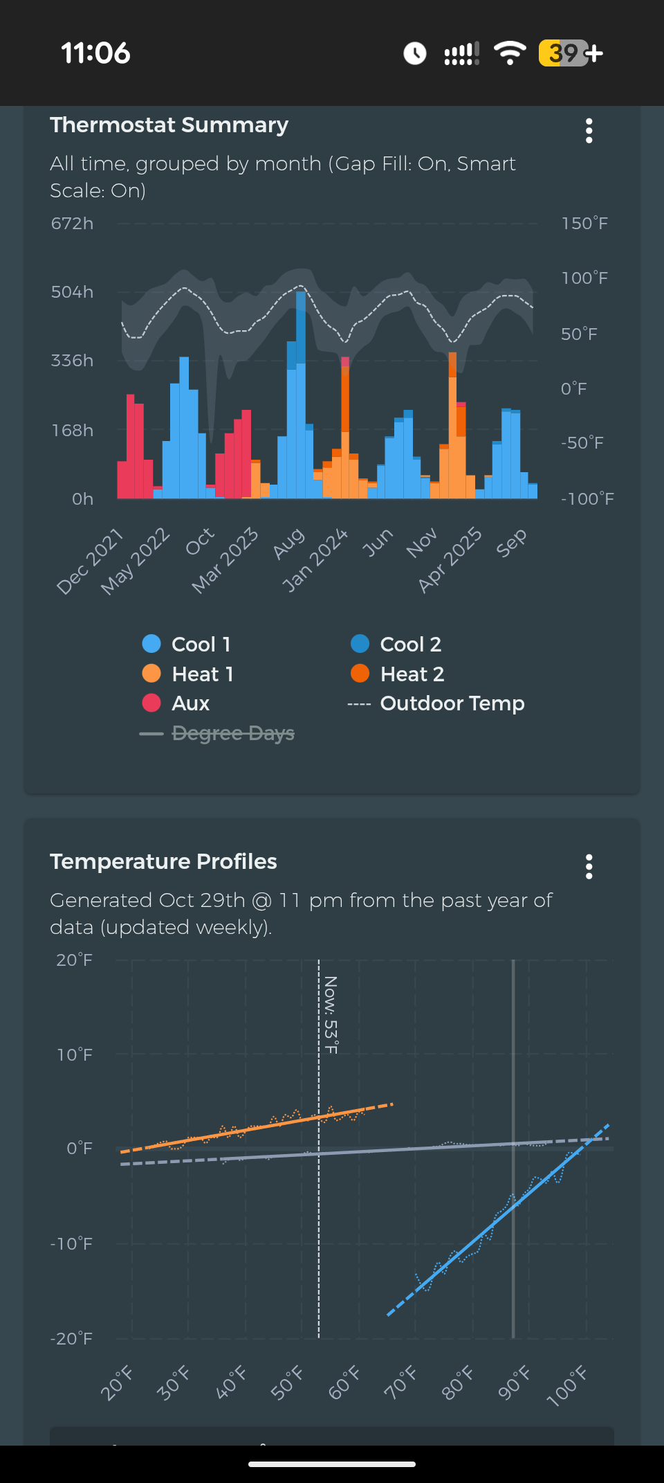 If you would like to send over your thermostat serial number I can poke around at the data and see if I can give you any better insights. It’s probably just lack of data but I can at least find that out and make sure it’s not a bug. ![]()
